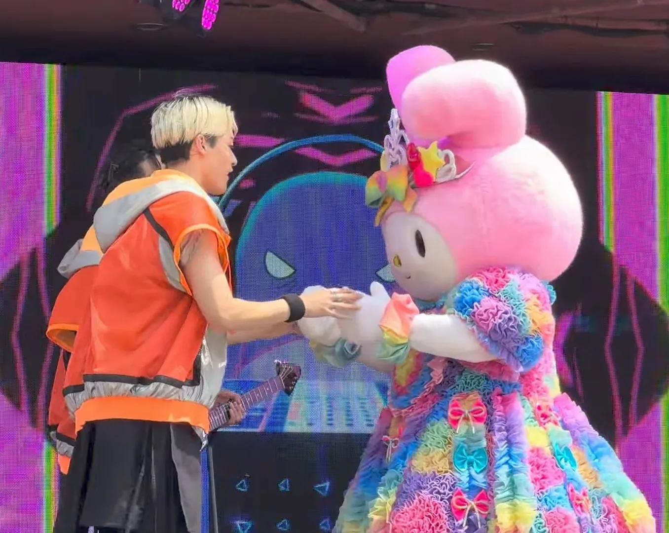 マイメロと握手をする仁くんとりくくん