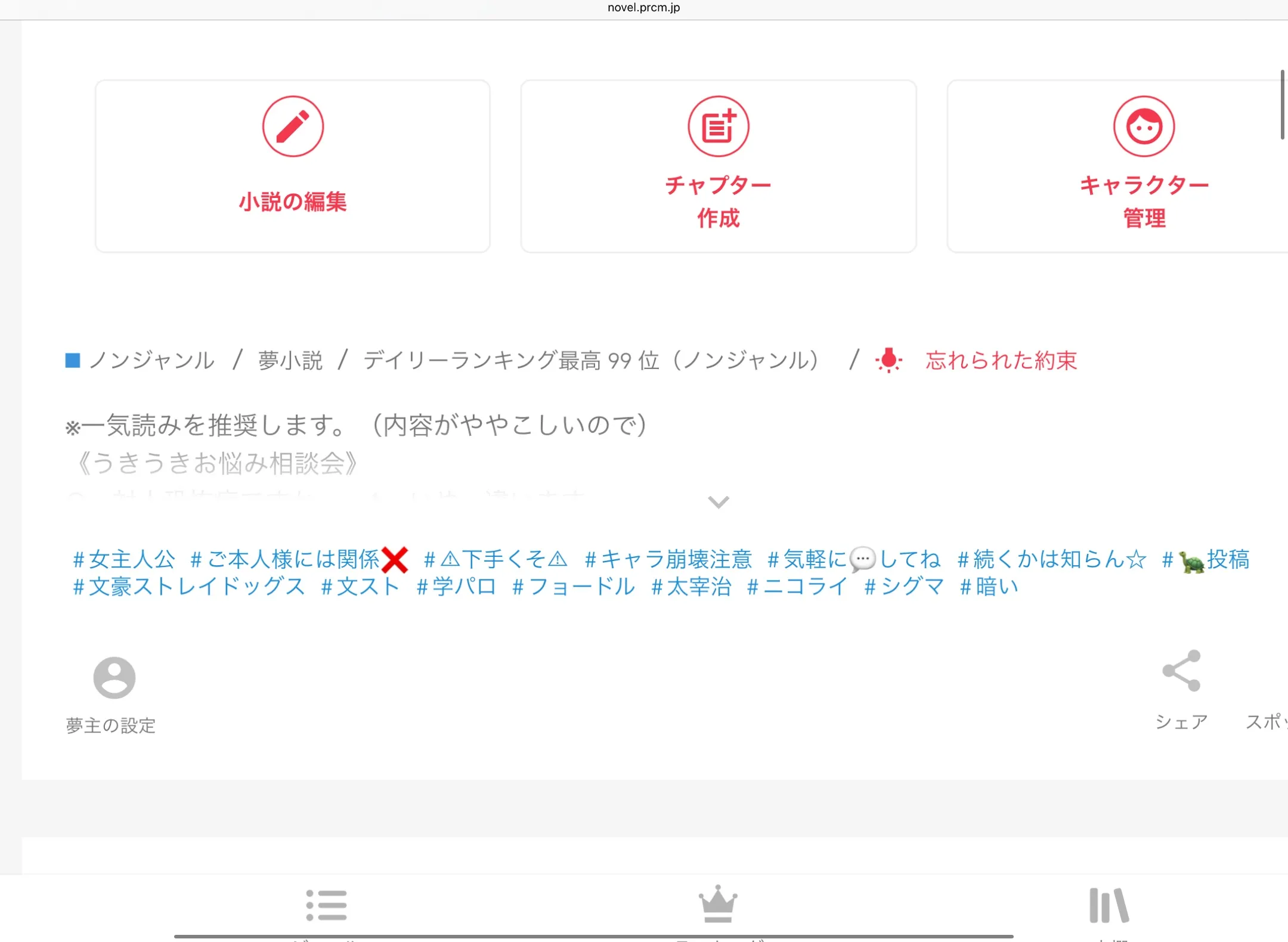 - 小説詳細ページ下部