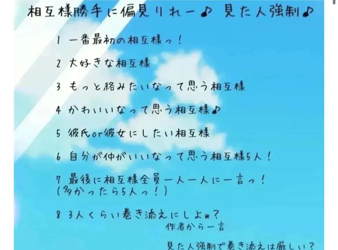 相互様なら誰でもいいよ??()