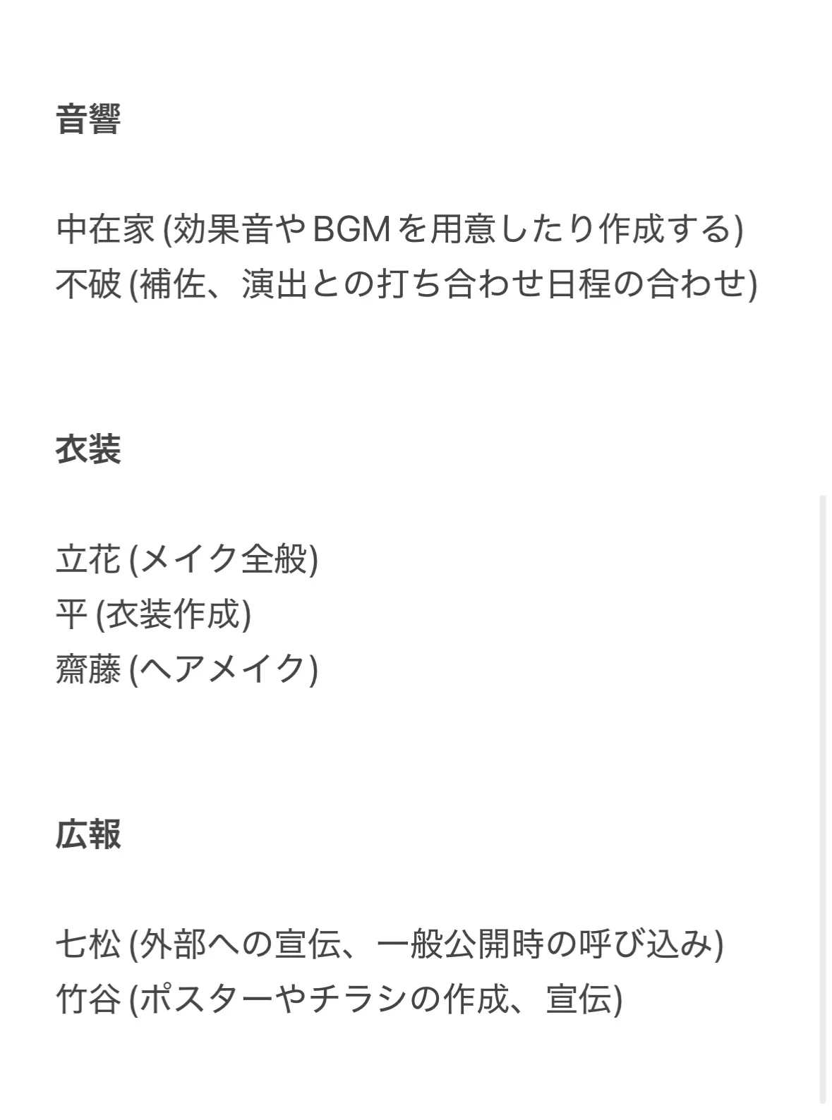 広報は近隣の学校へや他校と共演をする際のポスターの作成、文化祭時の宣伝が主な仕事となってます