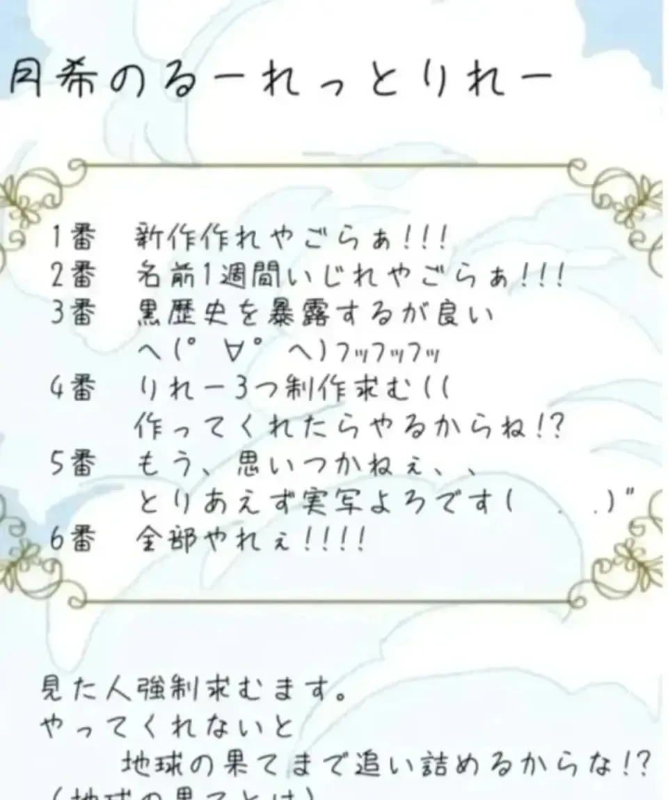 リレーやってくよ リレー部屋見るの楽しいから好き、でも見た人強制が多いからたくさん消費しなければ…!!