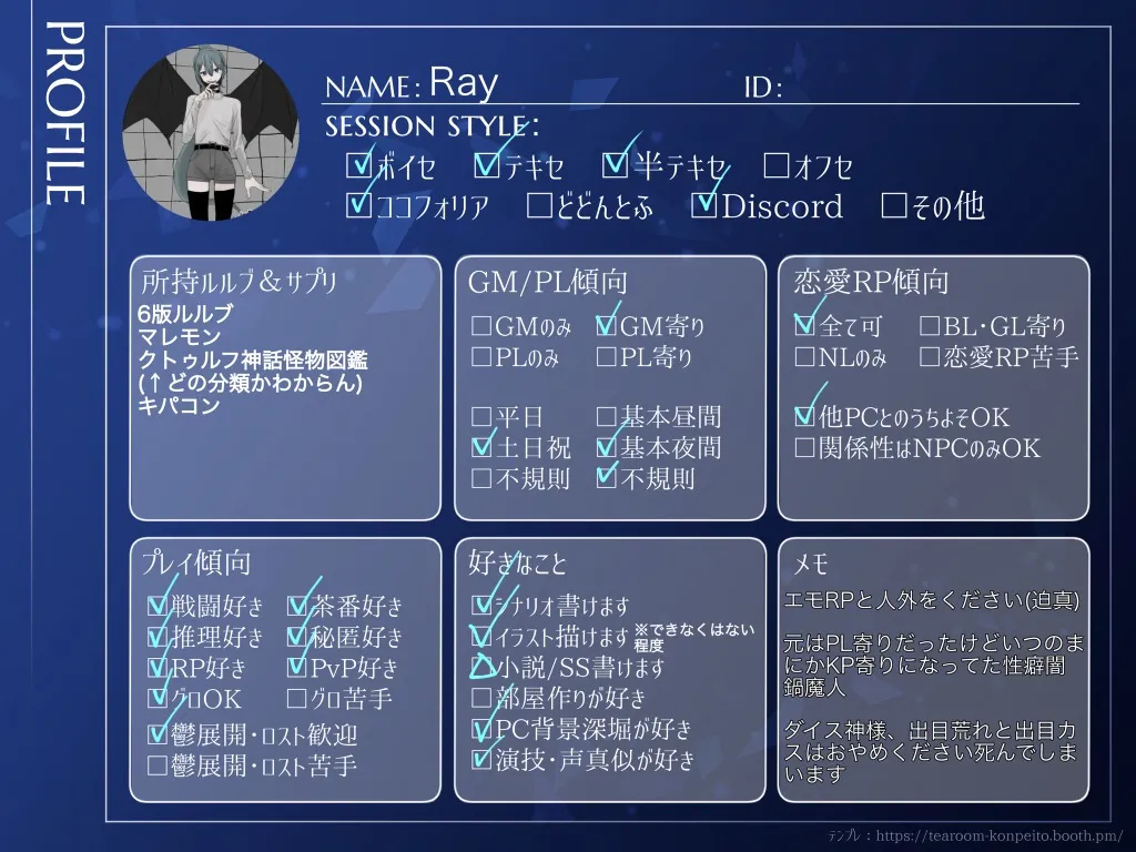 とりあえずTRPG自己紹介シート↓