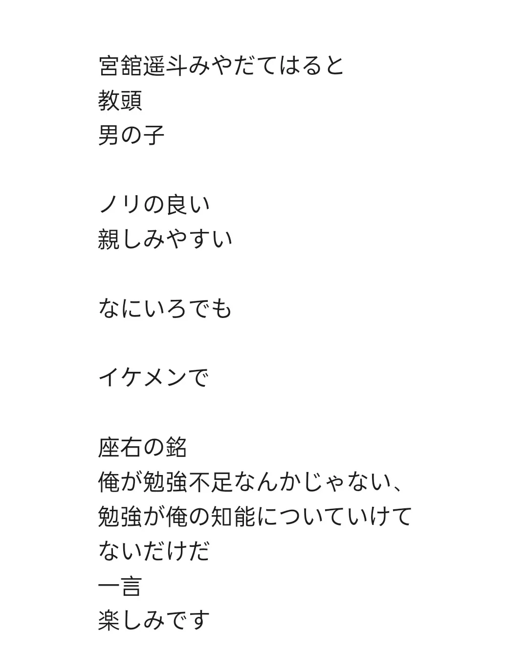教頭の宮舘遥斗です