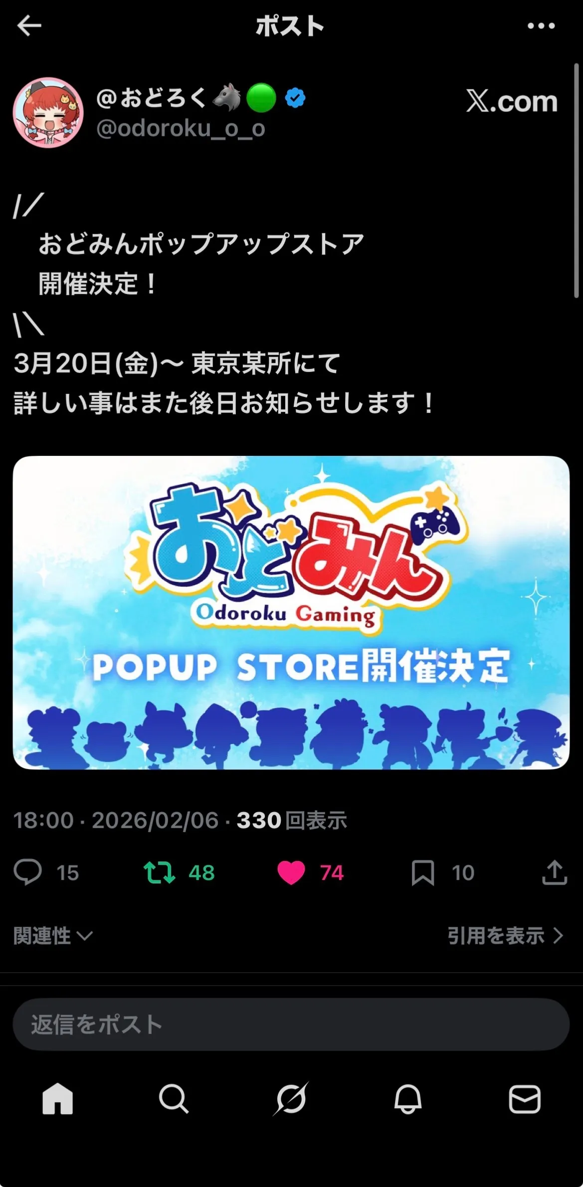 今日の🐺さんがX18:00時にて、ポップアップストア開催を言ったんですよ!!!