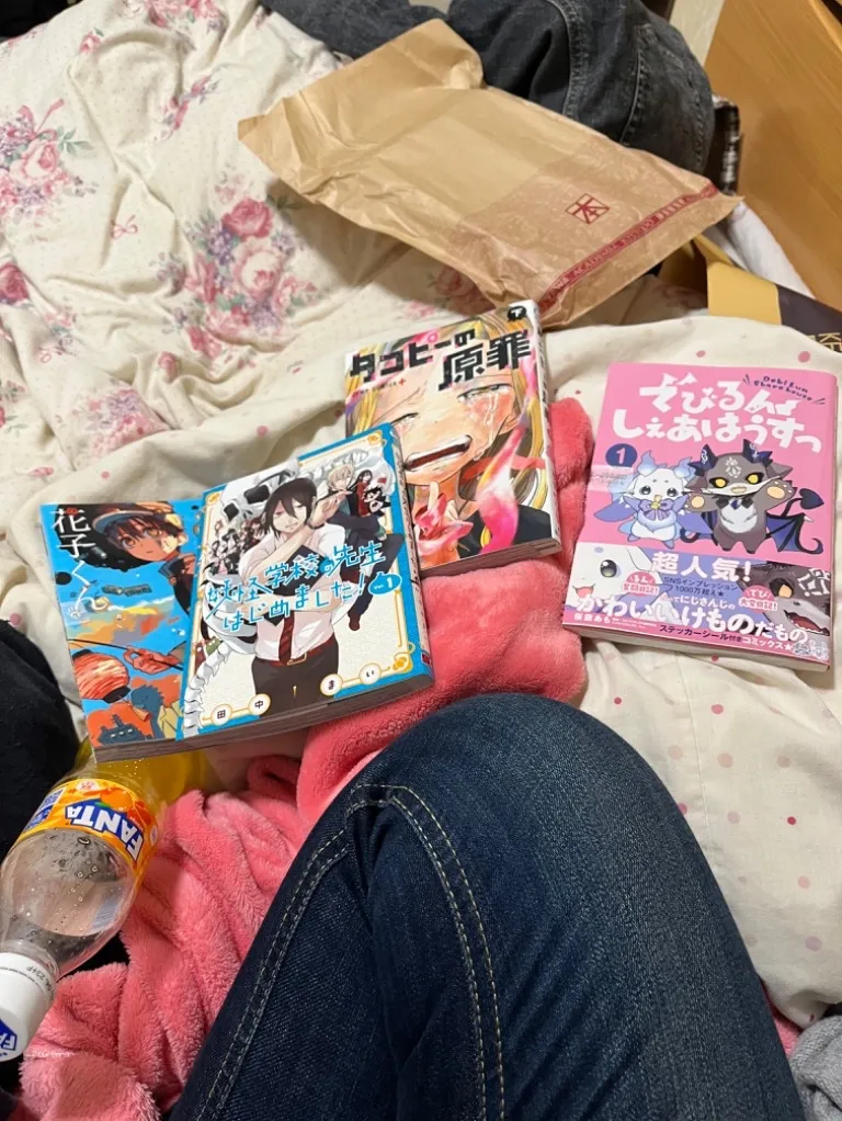 買った本は!タコピー原罪(下)と地縛少年花子くん(17)と妖怪学校の先生はじめました!(1)とでびるんしぇあはうすっ(1)を買った!妖怪学校の先生はじめましたを半分呼んだら、車🚗³₃の中で爆笑した!漫画はとても面白い!また買いたい!、そしてフライパンを買った!あとヨーグルト10個買った!楽しかった!また"家族と遊びたい"