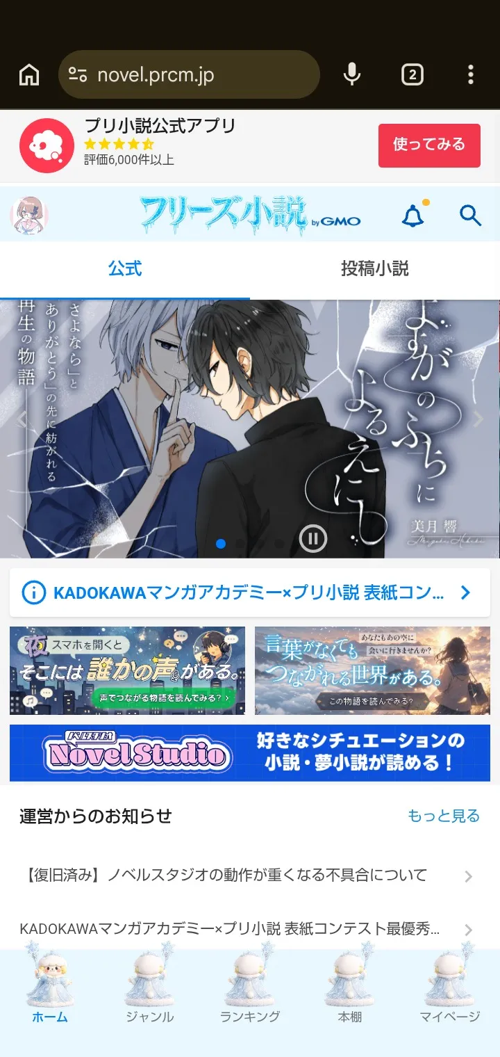 - スポットライト小説枠に掲載される小説は、ユーザーごとの好みに合わせて表示されます。