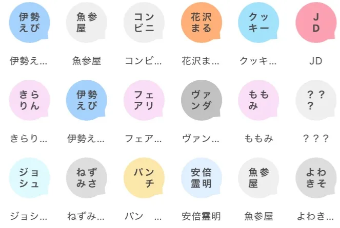 名前・色を同じにしているので、区別がつきません!