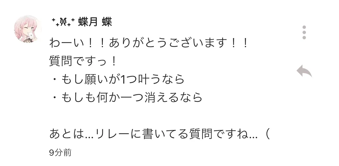 蝶さん、質問ありがとうございました!