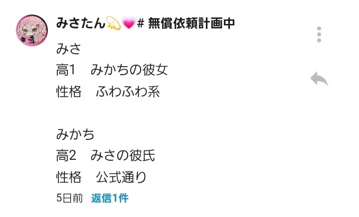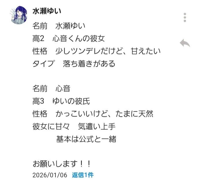 まだ設定とか書いてない方いれば、早めに書いてくれると嬉しいです、お願いします!