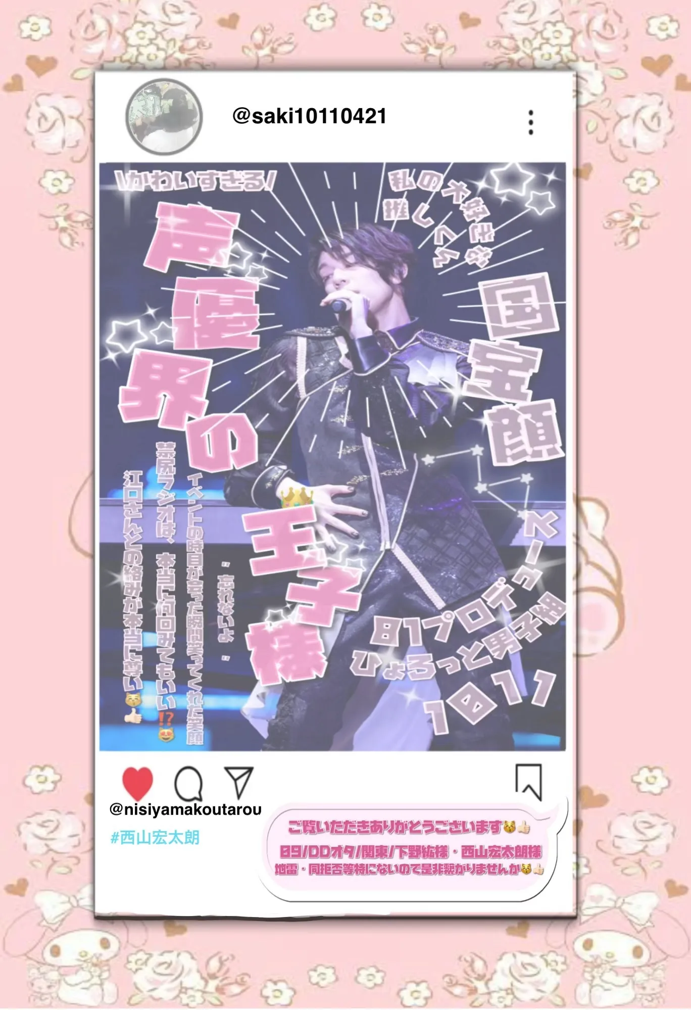 声優より 西山宏太朗樣:下野紘樣を中心に応援させてい