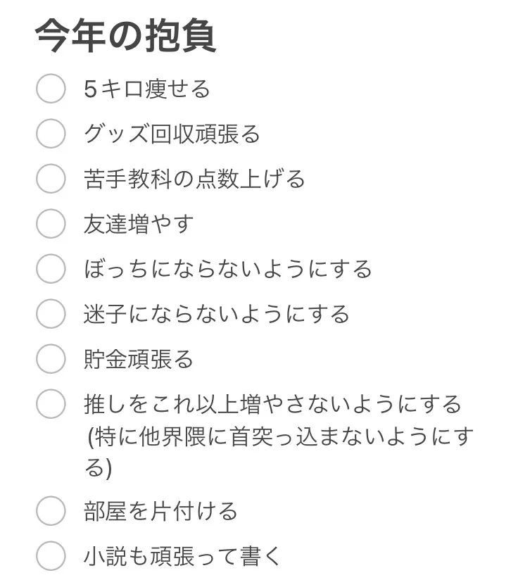 もう終わりですね。今年の抱負全部クリアが絶対できなくなりました😇