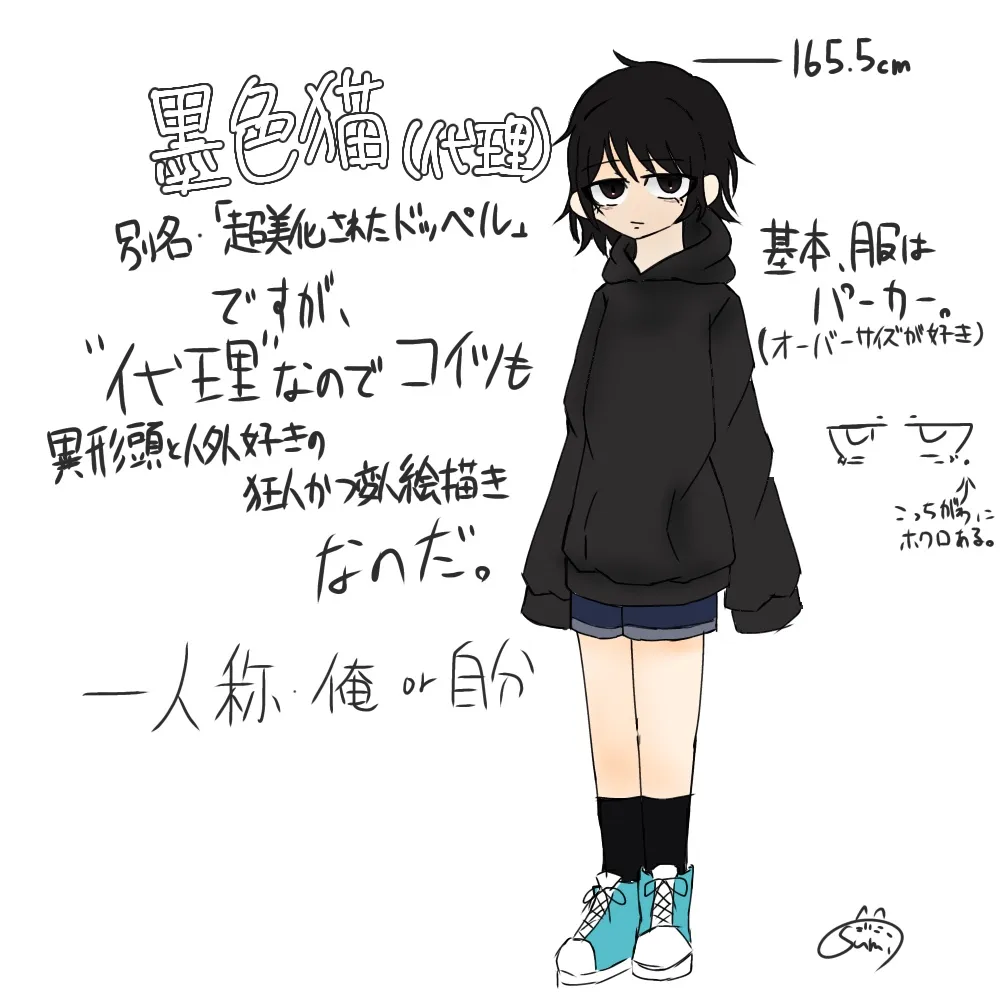 目元のホクロとかはマジで俺がそこにホクロあるし、パーカーもしょっちゅう着てます