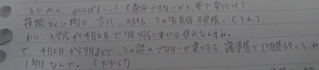 四月は、しめおわ投稿うぃーくなので、本編たくさんある予定