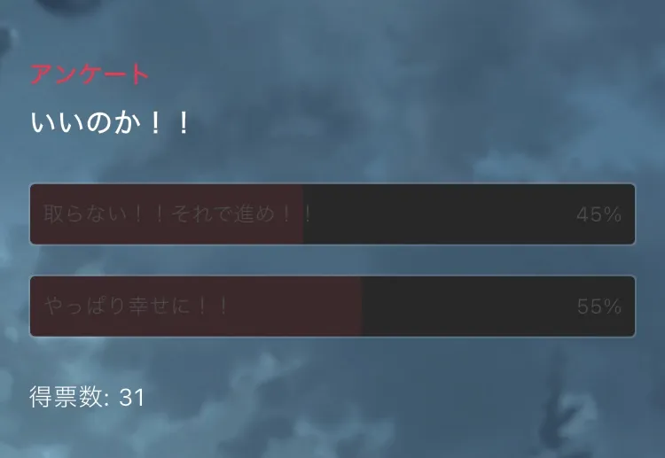 あと、今アンケート確認したらHappyENDも多いけどBADENDも期待してるよね〜