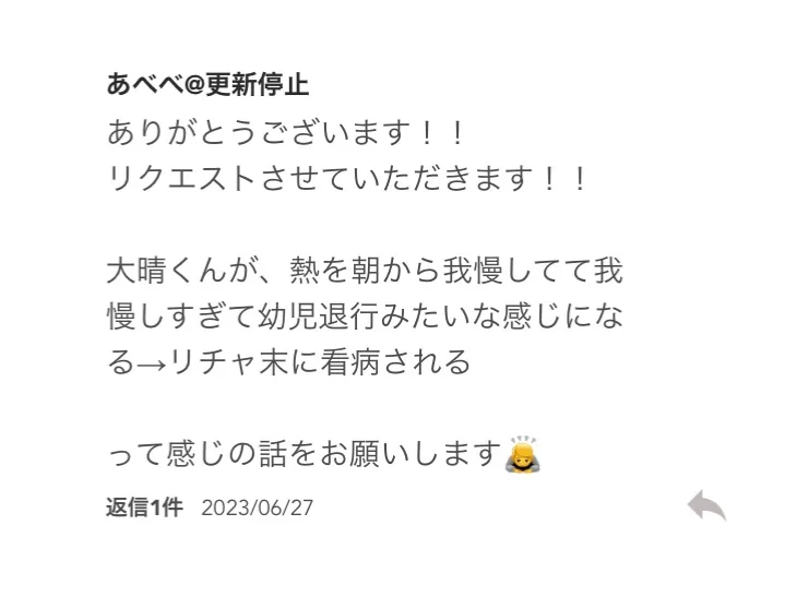 @あべべ さんのリクエストのお話を書きました!