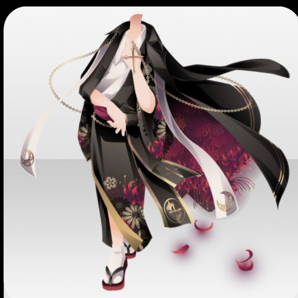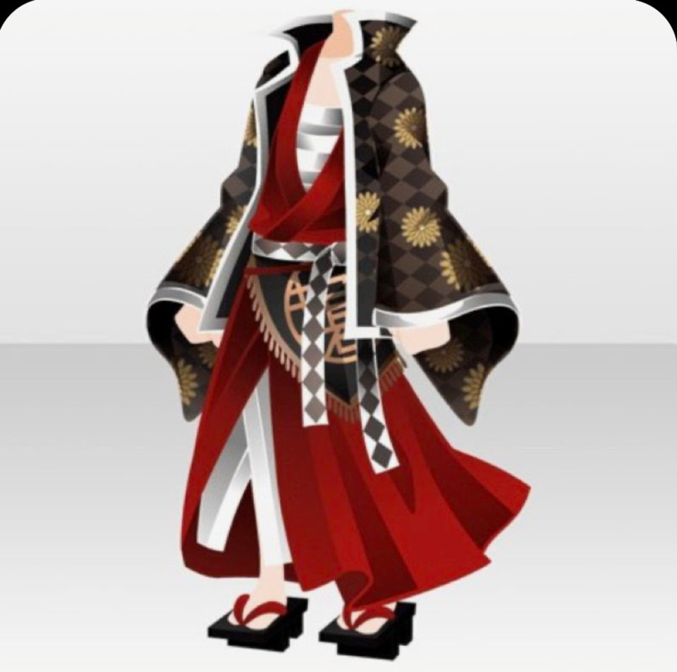 ・丈が長めの赤白黒の着物