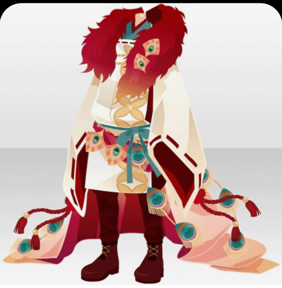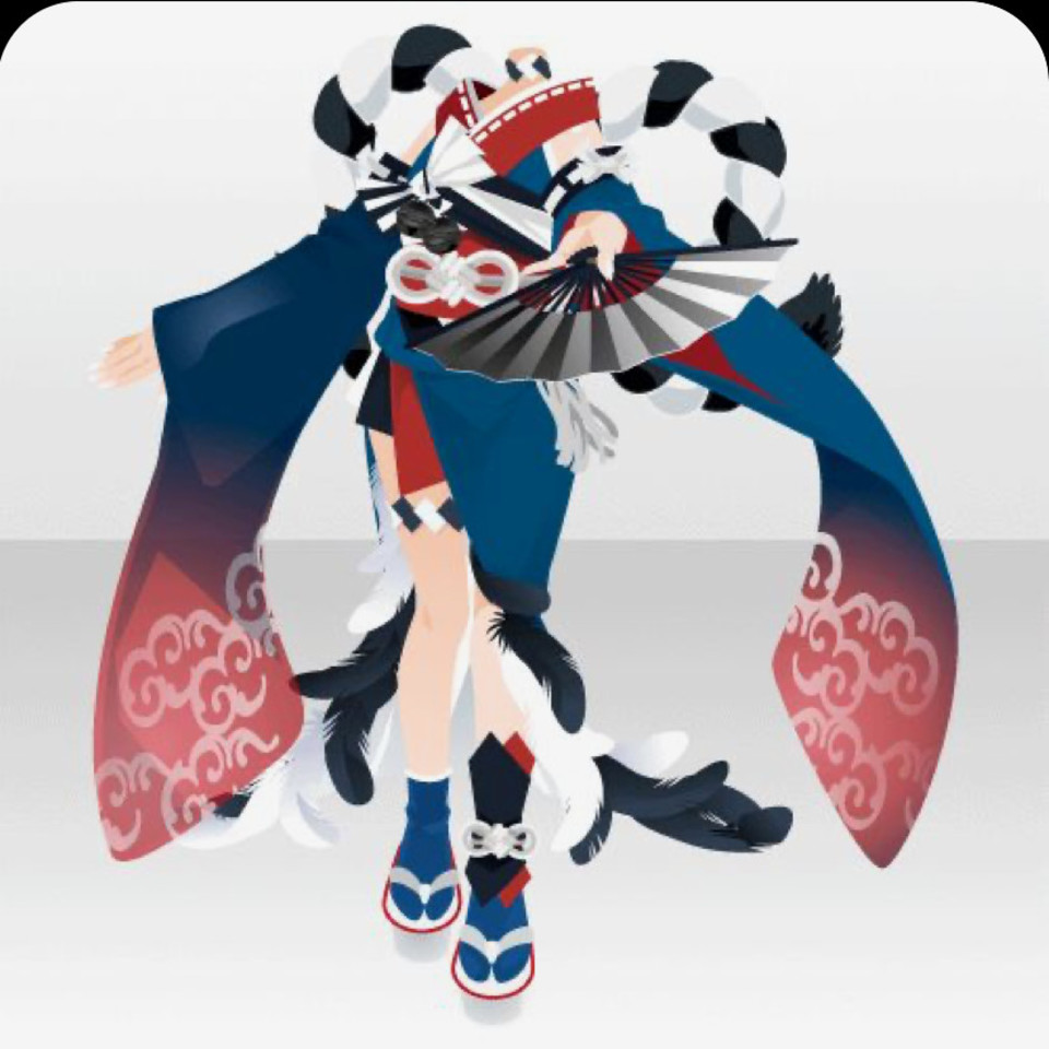 これの髪型がぱっつんじゃなくて、服は青が多めで黒なし!下の羽はもうちょい少なめ!