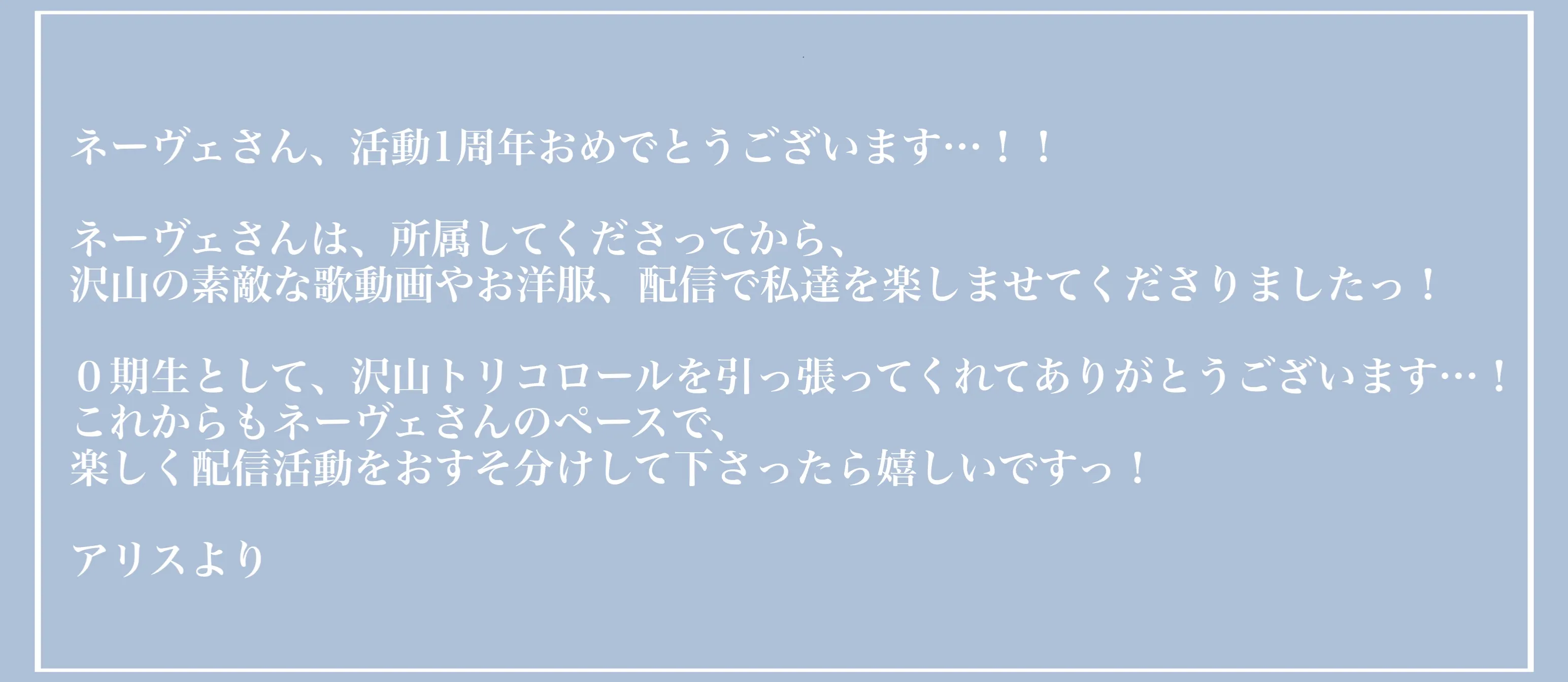『ネーヴェさん!!!!1年、おめでとうございます!!!!!!