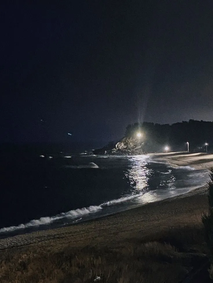 21時、、、海を見ながら浜辺に座った