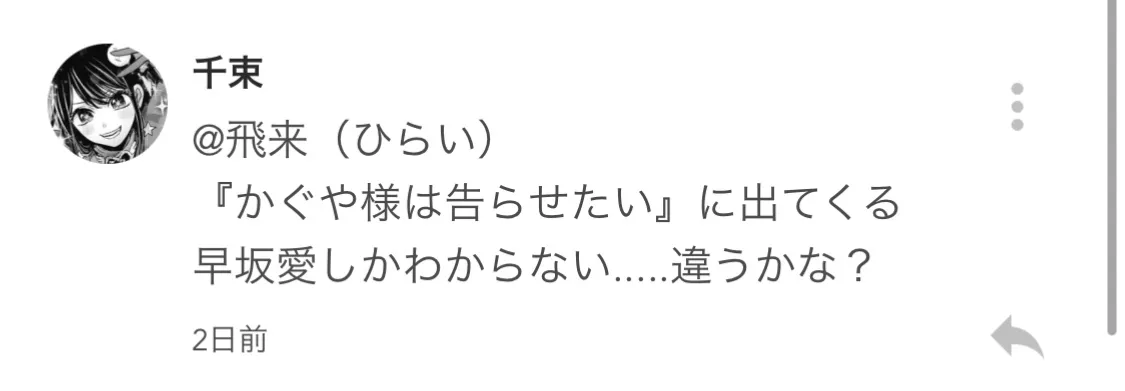 はい!かぐや様は告らせたいの『早坂愛』ちゃんの苗字です!