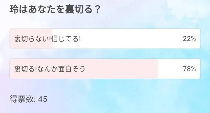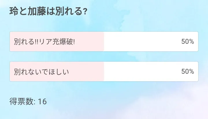このまま50/50 だったら再アンケートとろうと思ってます𓂃 ◌‬𓈒𓋪‪