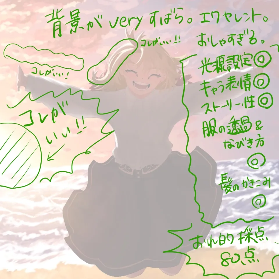 顔も体もバランス良く描けてるし、そこは今回特に添削なしで良きかな〜〜〜っ