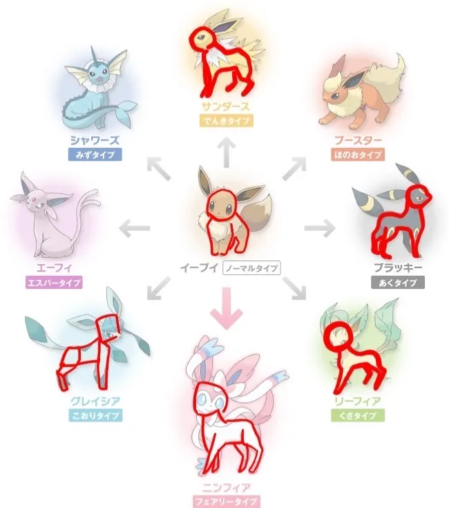 ここでパーツのサイズ比、位置が違うとポケモンは一気に可愛くなくなります