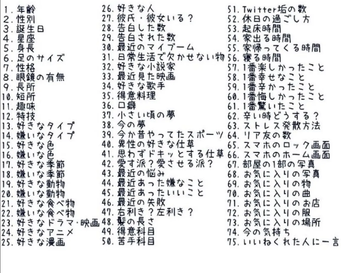 75、いいねくれた人に一言!