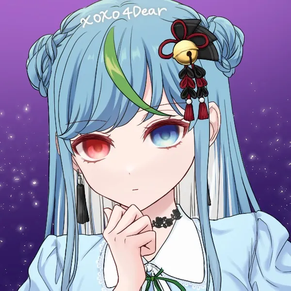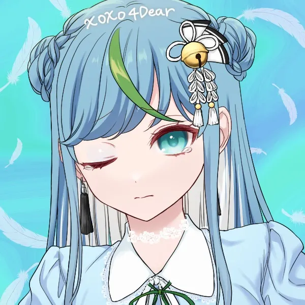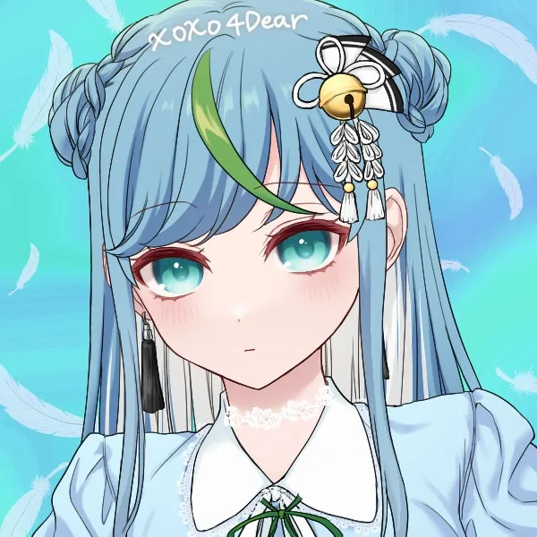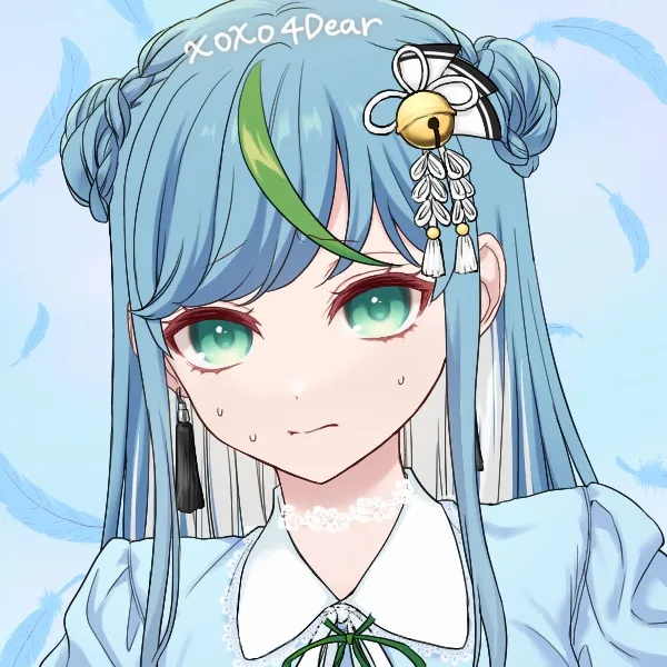 身長は高めの部類であり、外見年齢は大体20歳くらい。髪は勿忘草色、腰くらいまでのストレートロングで高い位置で三つ編みをお団子にした感じ。インナーカラーは白で若竹色のアクセントがある。また、髪に白色の鈴のアクセサリーを付けている