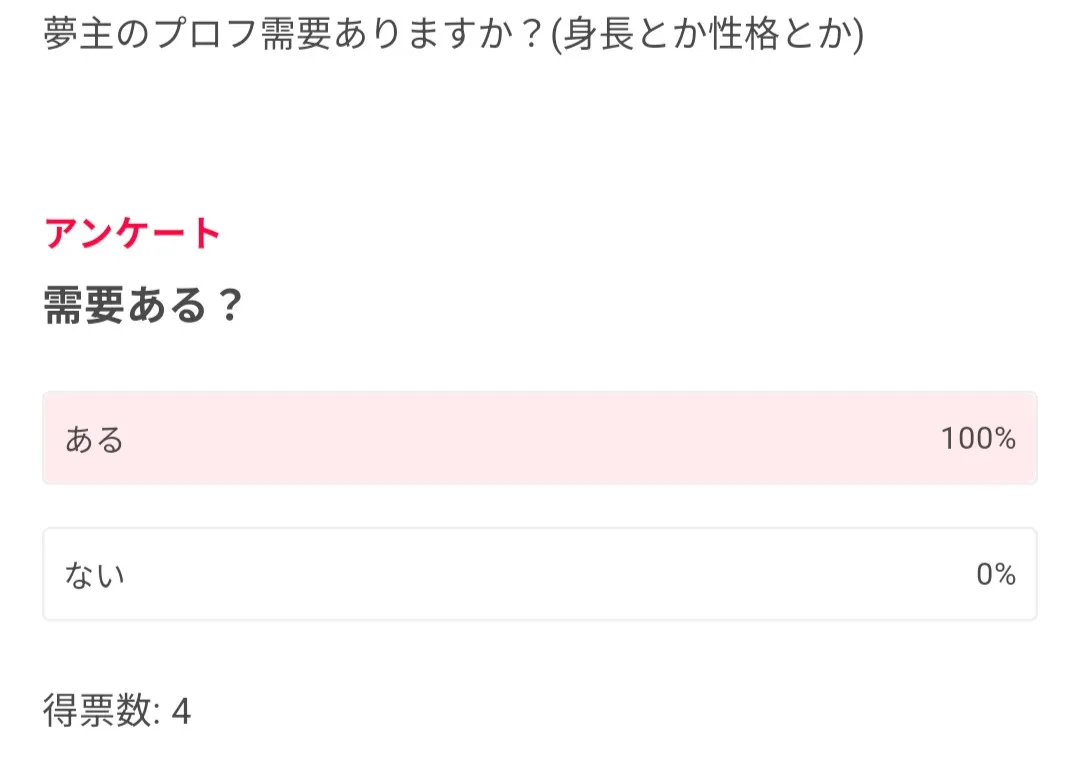 先程、夢主のプロフについてアンケートを出しました!