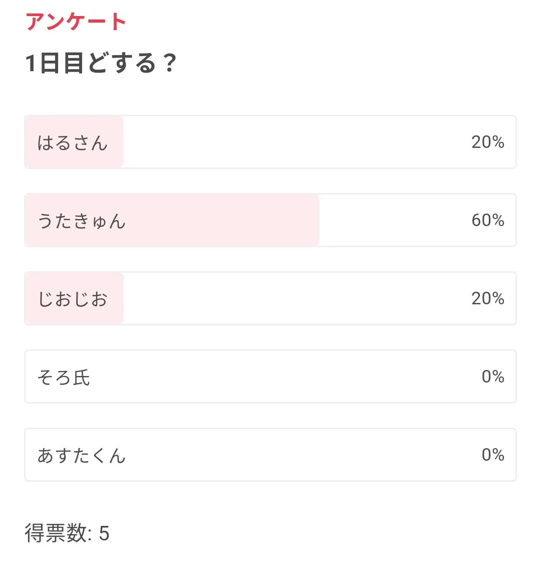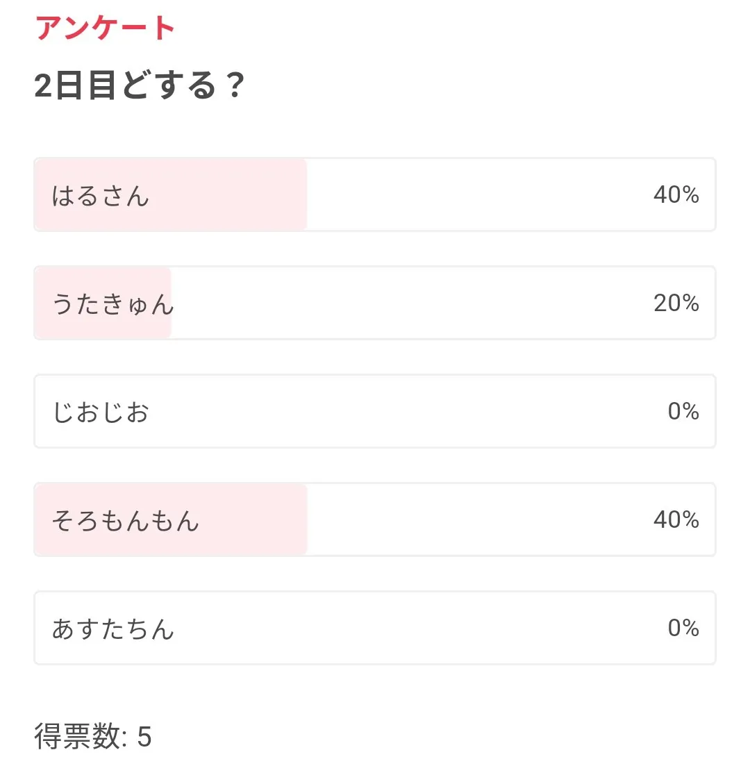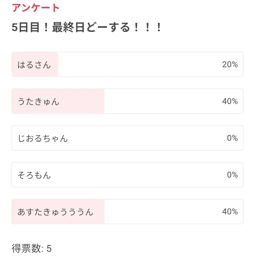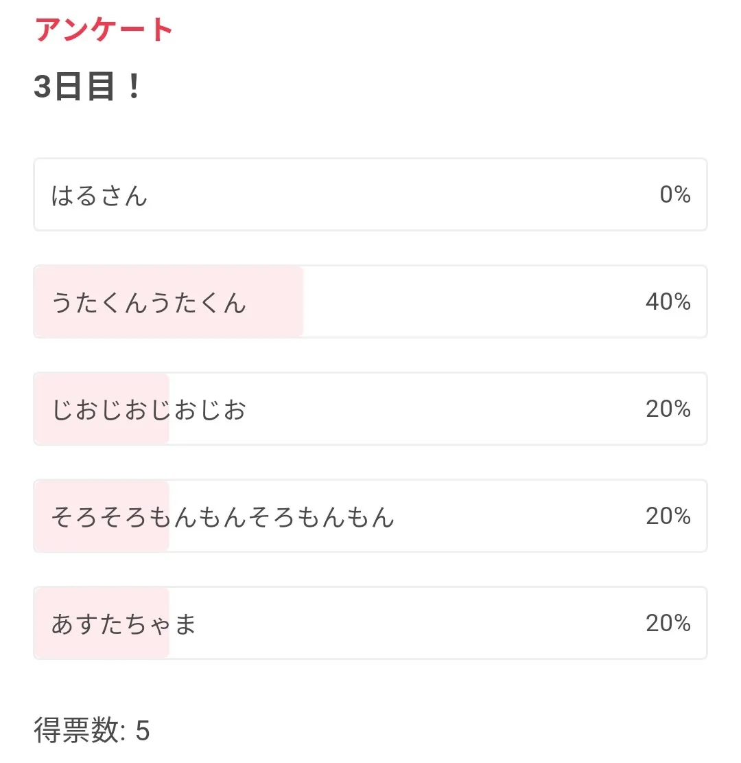5人しか投票してないのにこれはさすがにうたくんの熱烈ファンおるやろ()