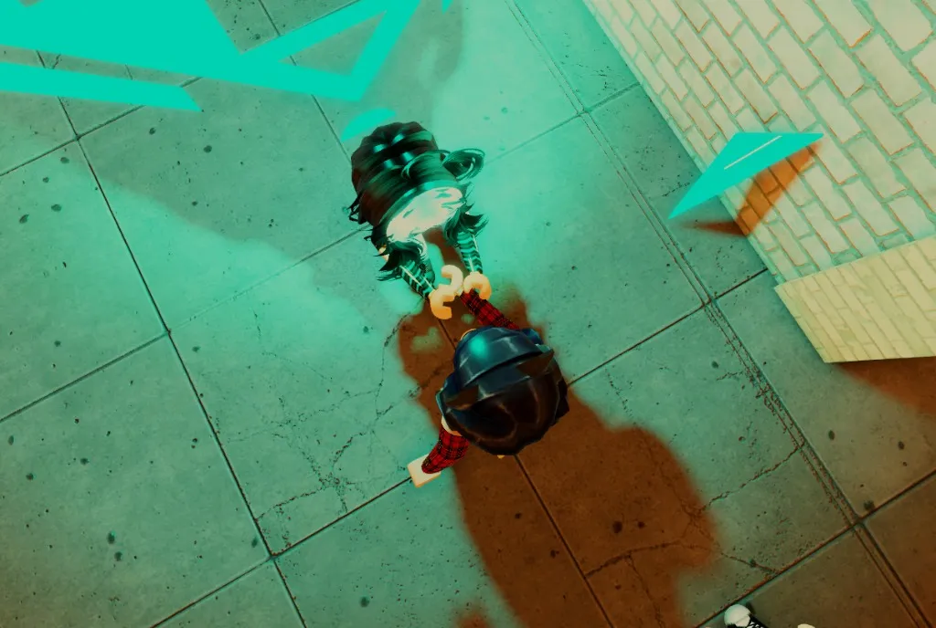 空からアスが飛んできて、建物のへこみに掴まったが、すぐに手を滑らせ地面に尻もちをついた