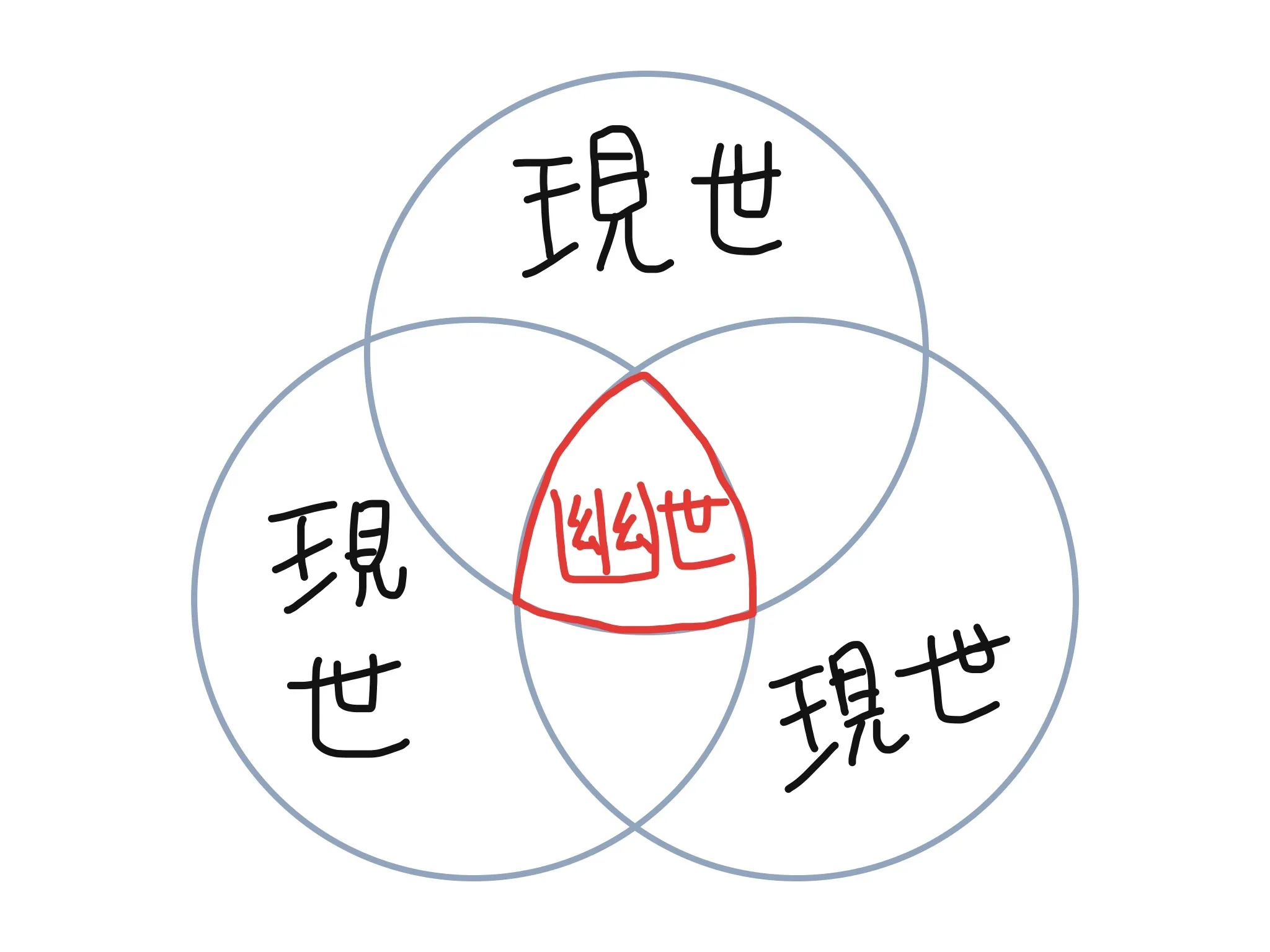 現世は三つしかないというわけではなく、ほぼ無限にあります。(画像は簡略化)