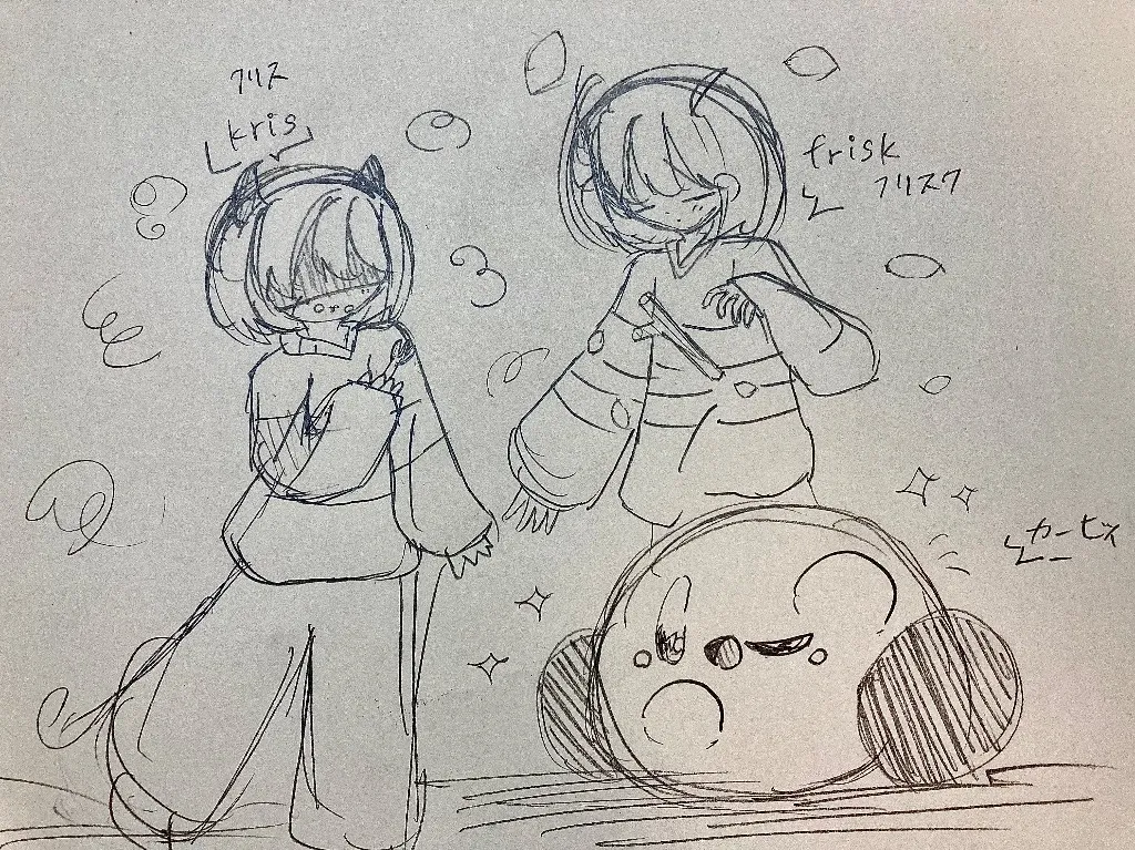 何もすることなくて暇すぎて描いた2人と一匹(?)です!