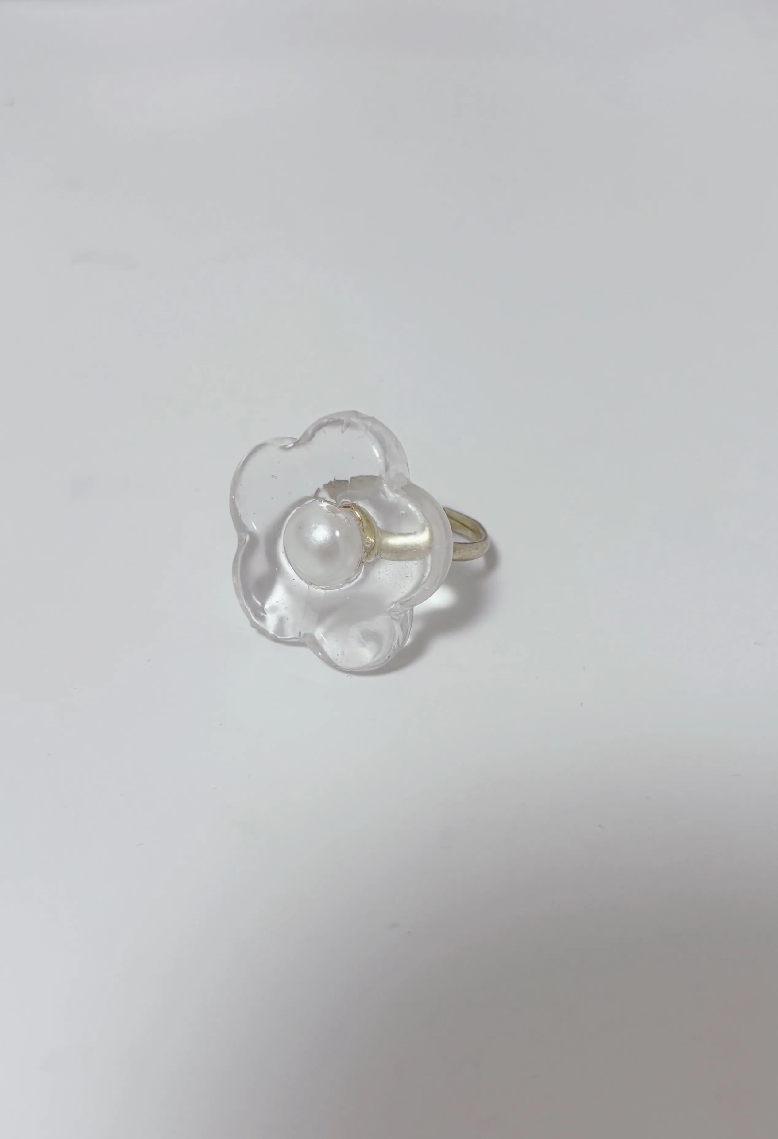 大きな透明感あるお花とパールの上品さが可愛い指輪にしました!