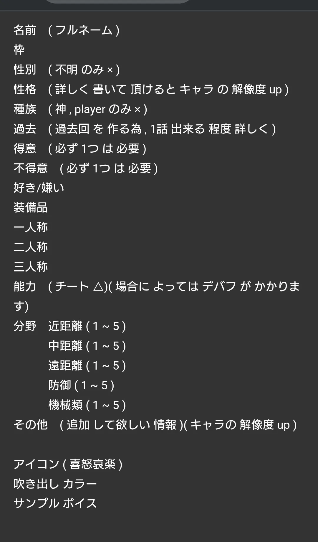 その他 英語が話せるが、日本語が怪しいところがある(純日本人)掴みどころのない性格と思われやすいが、大体全部会話が脳死のせいでそうなっている。耳がよくあらゆる音が聞こえてしまうので、たまーにフードを被っている。視力がかなり悪いため人の顔を覚えていない。人は気配や話し方、立ち方などで判断している