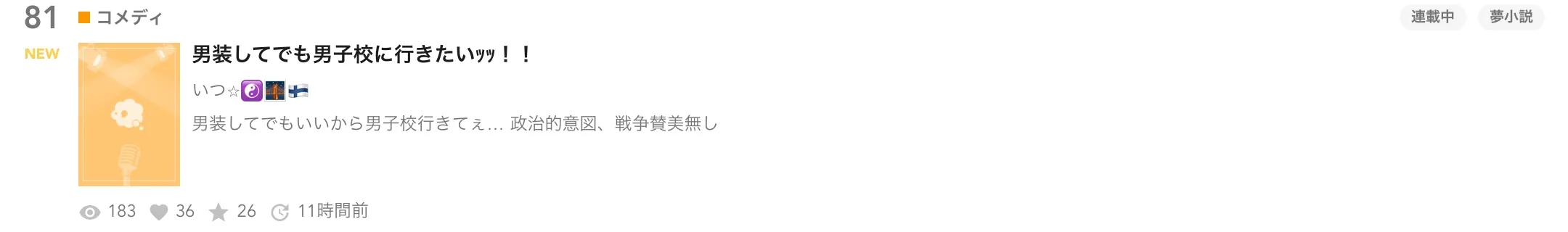 スポットライト小説枠に掲載される