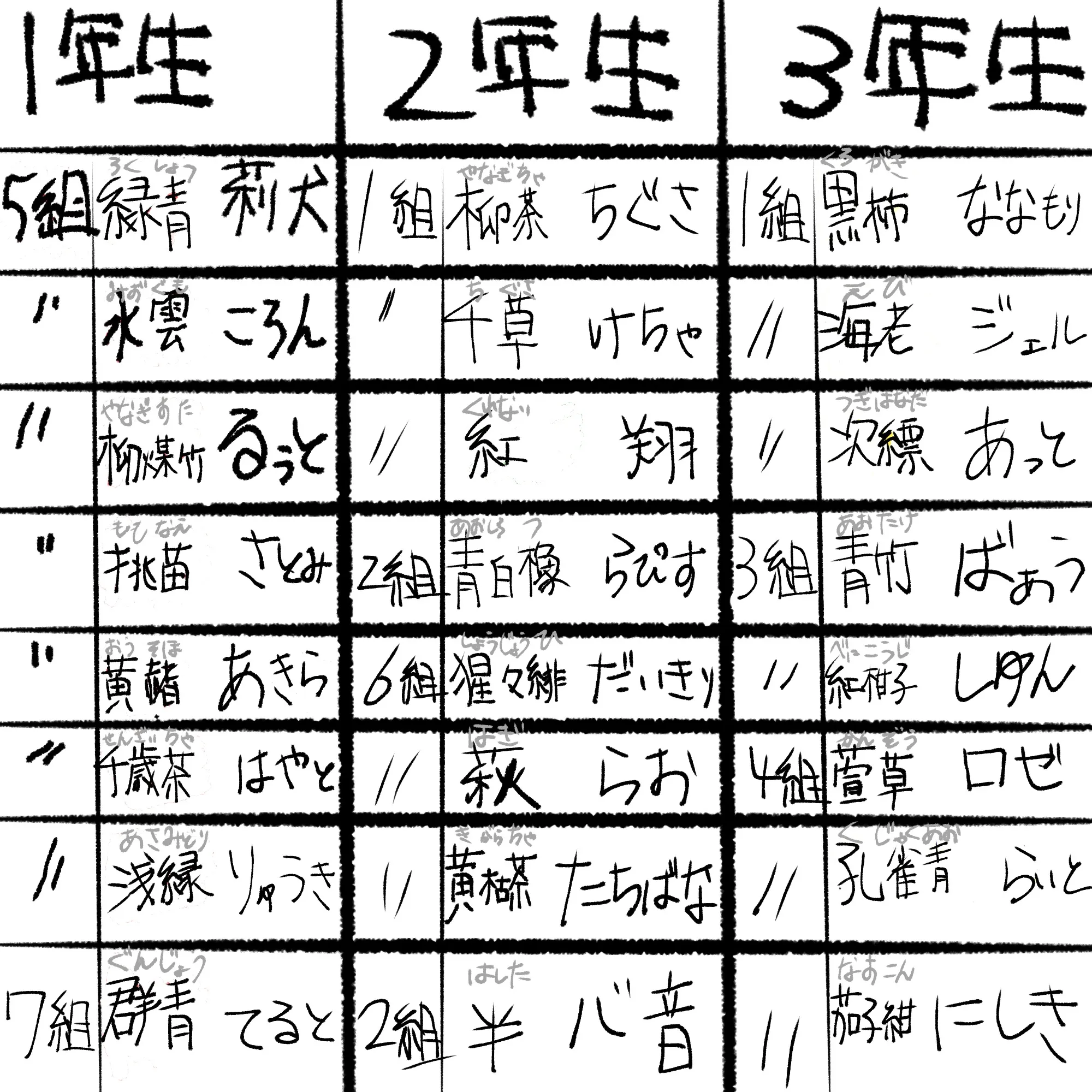 全員のクラスの表持ってきたぞー